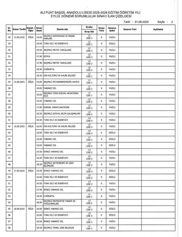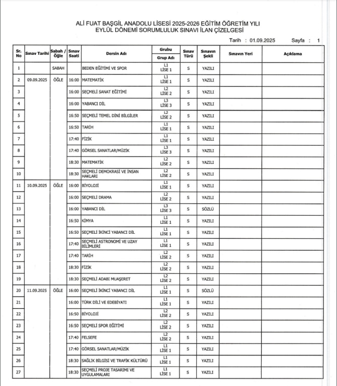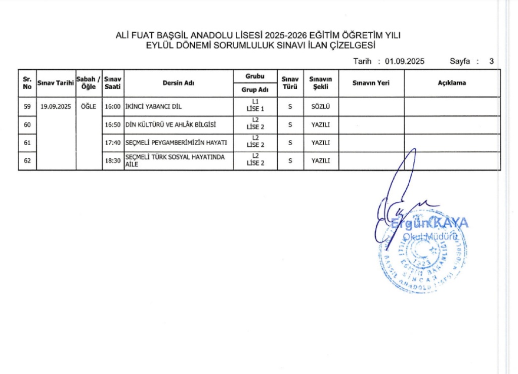 2025-2026 EĞİTİM-ÖĞRETİM YILI EYLÜL AYI SORUMLULUK SINAV TAKVİMİ İLAN EDİLMİŞTİR.